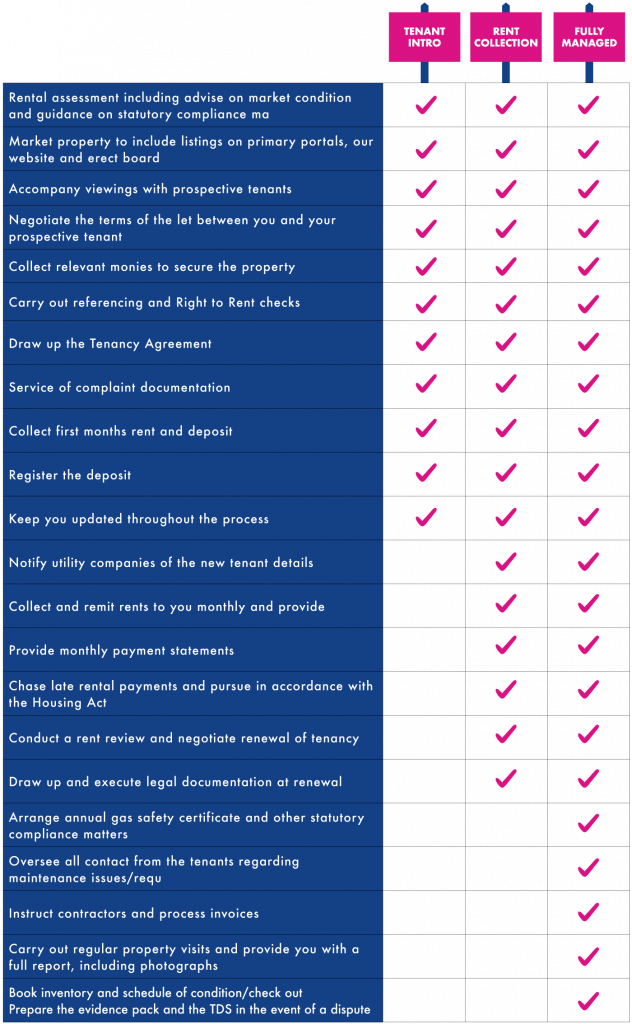 We can then collect your rent from your tenant and account to you for this including chasing arrears.